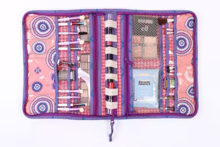 Running With Scissors by By Annie is a zip-up tool case designed to organize rotary cutters scissors rulers and more. Multiple pockets in mesh vinyl and fabric keep tools visible and secure. Designed in collaboration with Tula Pink and pairs perfectly with the Take A Stand tote.